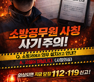 보령소방서(서장 고광종)는 최근 소방공무원을 사칭해 허위 공문과 문자메시지를 발송하고 특정 장비 구매를 유도하는 사기 사례가 지속적으로 발생함에 따라 관내 숙박업소 및 다중이용시설…