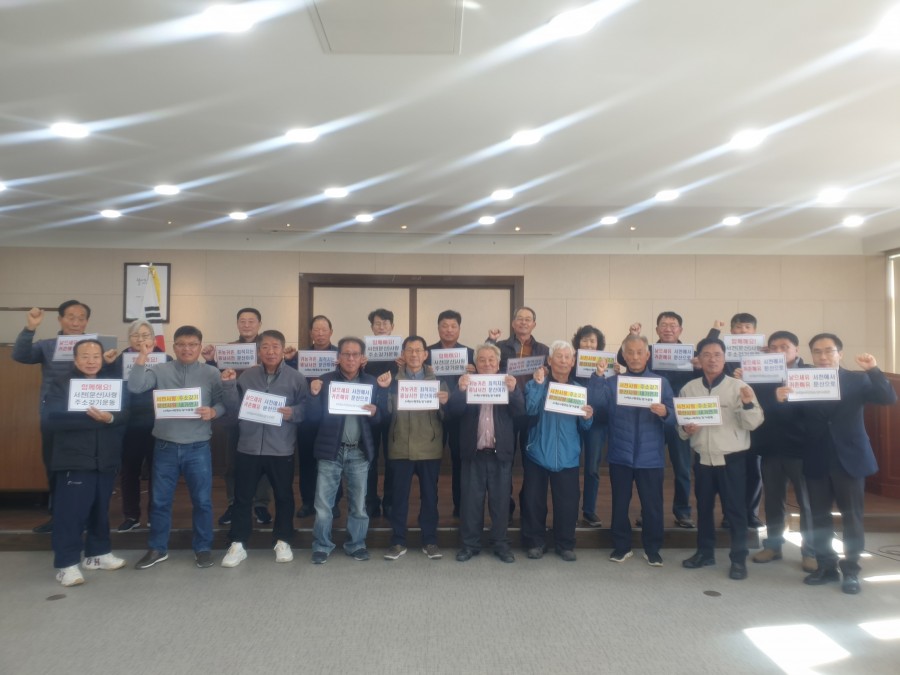 서천군 문산면이 13일 문산면이장단 18명을 대상으로 서천 인구 5만 회복을 위한 ‘서천사랑 주소갖기’ 운동 간담회를 개최하고 홍보 피켓을 활용한 공감대 확산 결의대회를 가졌다.