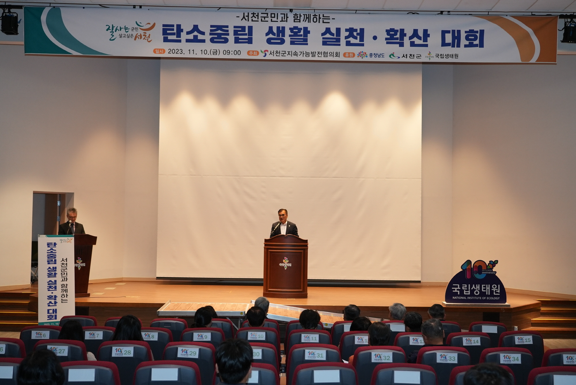 서천군지속가능발전협의회가 주최하고 충청남도, 서천군, 국립생태원이 후원하는 탄소중립 실천·확산대회가 지난 10일 국립생태원 생태교육관에서 김기웅 군수를 비롯한 관계자 150여 명이 참석한 가운데 개최됐다.