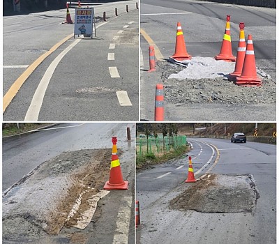 (사진= 위: 현장 안전 조치 전 8일 현장사진. 아래: 현장 안전 조치 후 현장 사진)-고위험 커브·삼거리서 경고시설까지 축소…행정 인지 후에도 악화된 현장 ‘충격’충남 보령시 …