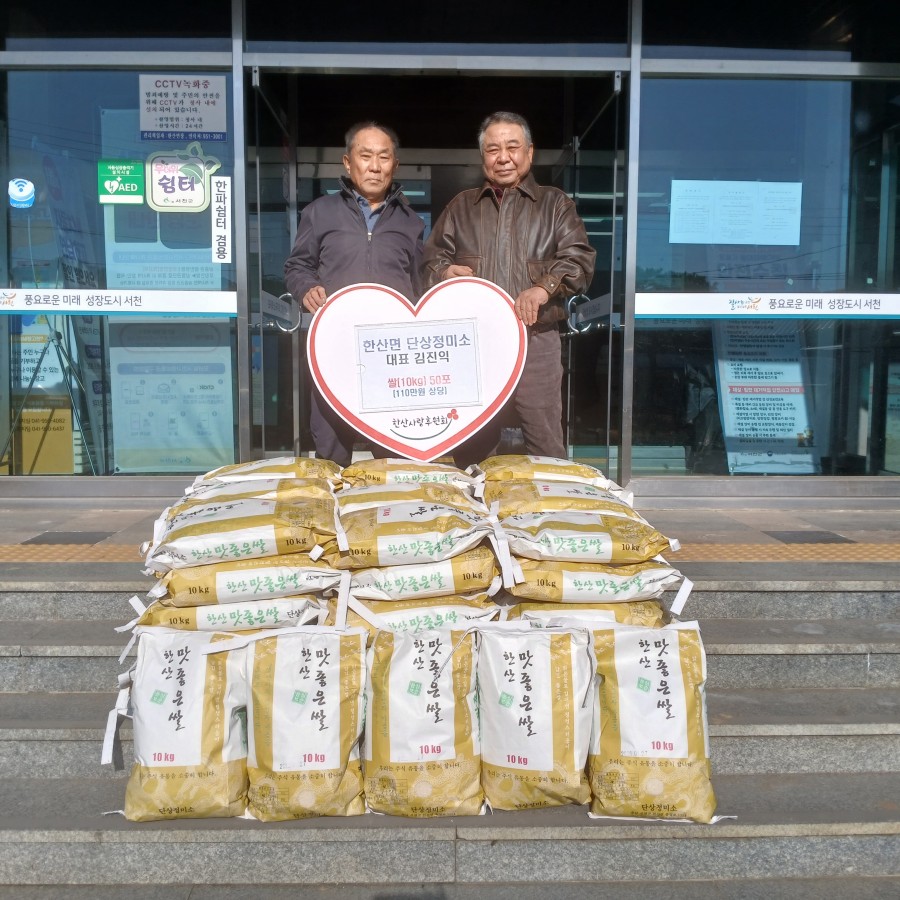 한편, 이번에 기탁된 쌀은 한산면에서 생산하고 도정한 품질 좋은 쌀로 관내 취약계층을 위해 지원할 예정이다.