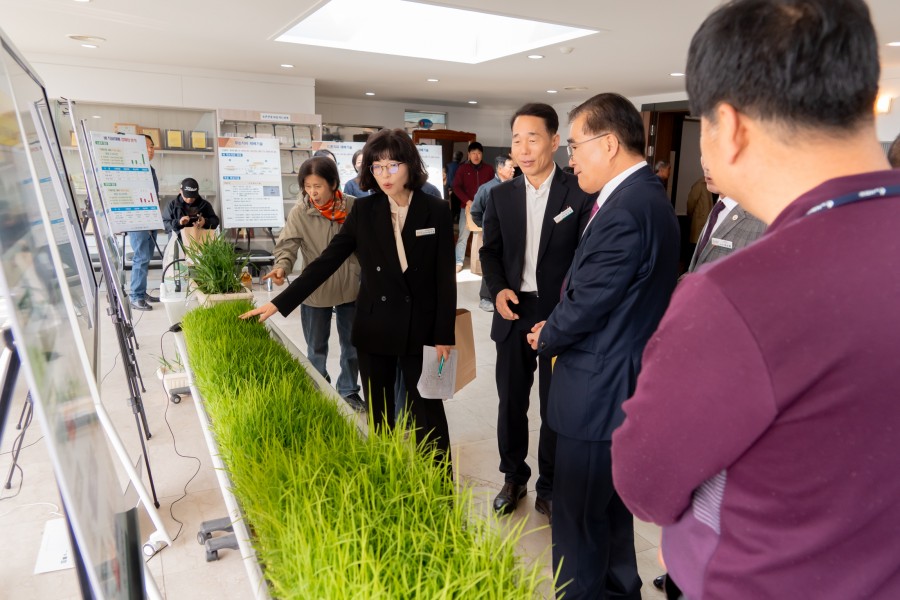 볍씨 소독 방법에 따른 발아율과 육묘상 성묘율 비교 시험 결과를 전시해 농업인들이 소독 효과를 직접 확인할 수 있도록 했으며, 드론·무논·건답 직파 등 재배 유형별 관리기술과 관·배수 요령도 함께 소개했다.