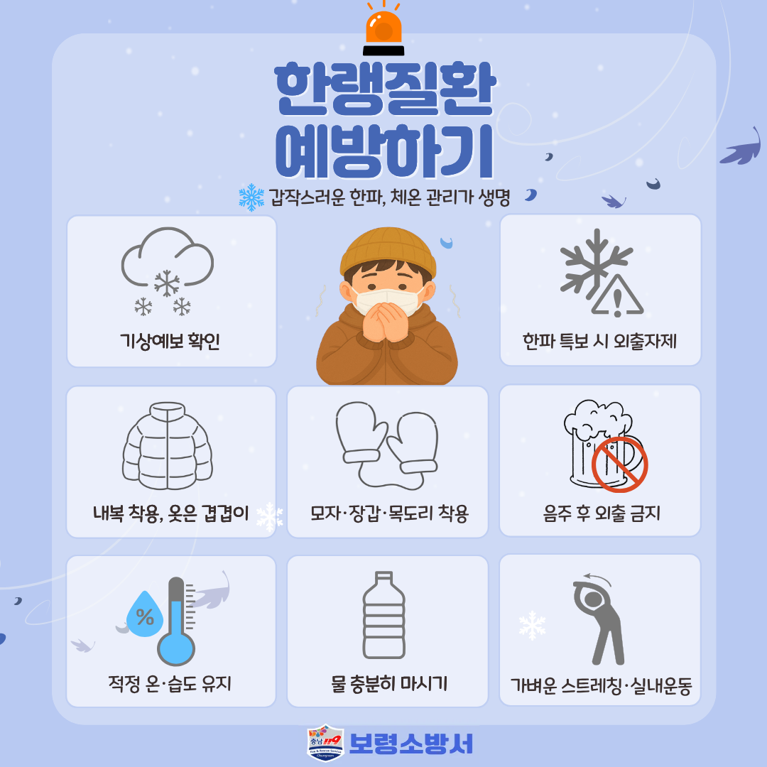 보령소방서, 갑작스러운 한파 대비 한랭 질환 예방수칙 안내![]()