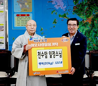 보령시 천수암 일정스님, ‘사랑의 백미’ 기탁으로 이웃사랑 실천