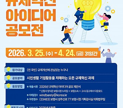 낡은 관행 개선, 규제 타파!! 건강한 보령시를 위한 ‘2026년 규제혁신 아이디어 공모전’ 개최