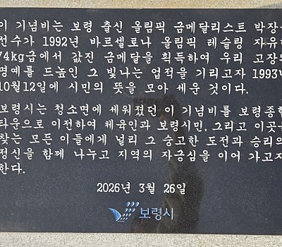 보령시는 보령 출신 올림픽 금메달리스트 박장순 감독의 빛나는 업적을 기리고 시민의 자긍심을 고취하기 위해 추진한 ‘박장순 기념비 이전 사업’을 마무리하고, 26일 박장순 기념비 이…