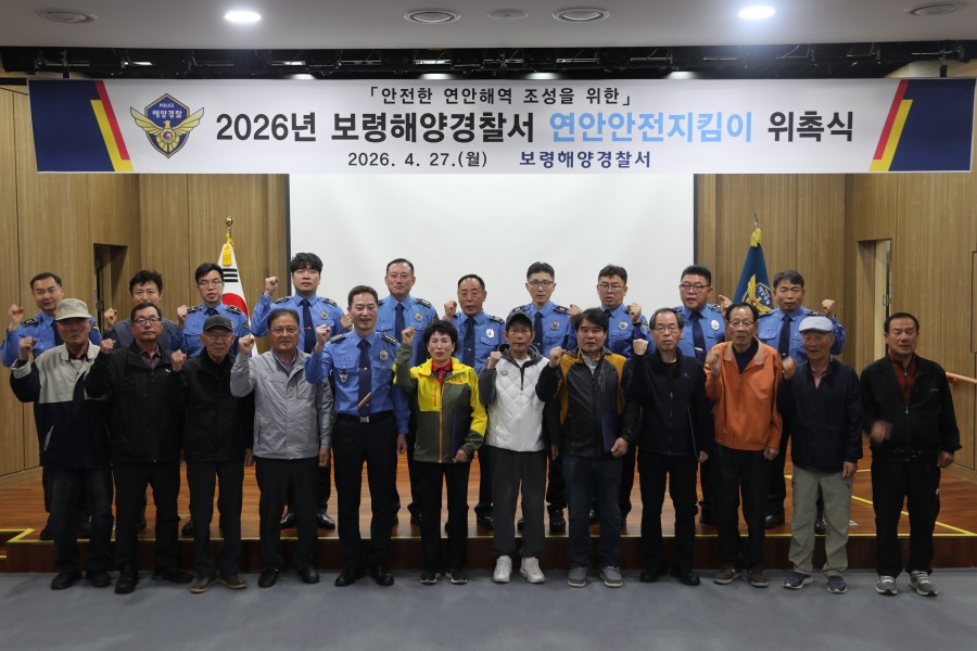 보령해양경찰서(서장 이근영)는 27일 연안사고 예방을 위해 선발된 ‘2026년 연안안전지킴이’ 12명에 대한 위촉식을 개최했다고 28일 밝혔다.