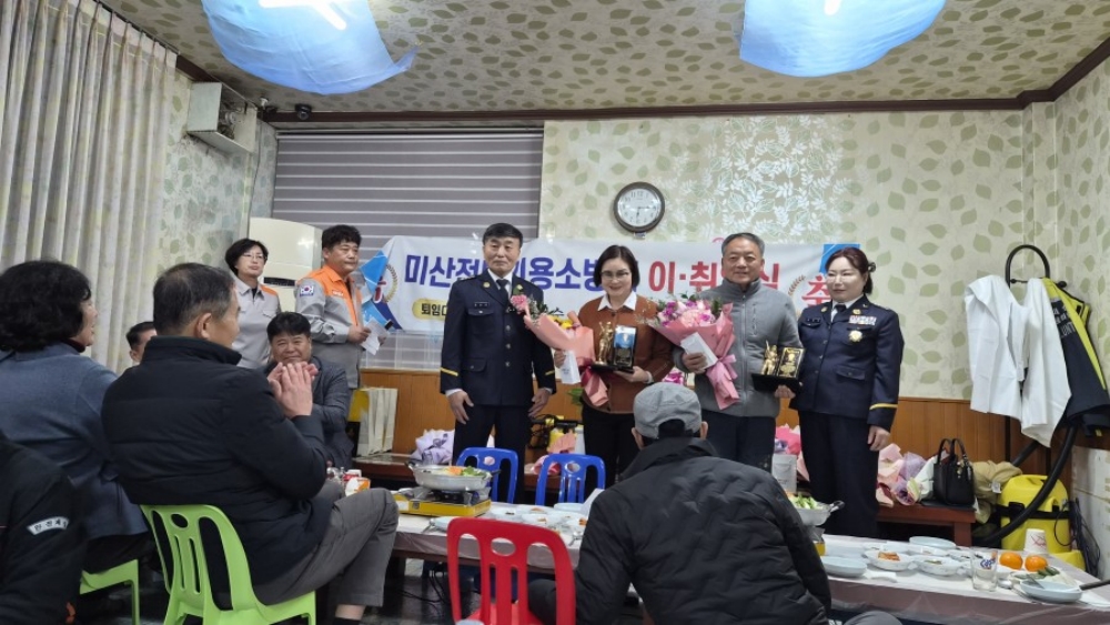 이번 이·취임식은 그동안의 노고를 존중하고, 앞으로의 사명을 분명히 다지는 의미 있는 자리로, 미산면 의용소방대가 지역사회와 함께하는 든든한 안전 파수꾼으로서 새로운 출발을 알리는 계기가 됐다.