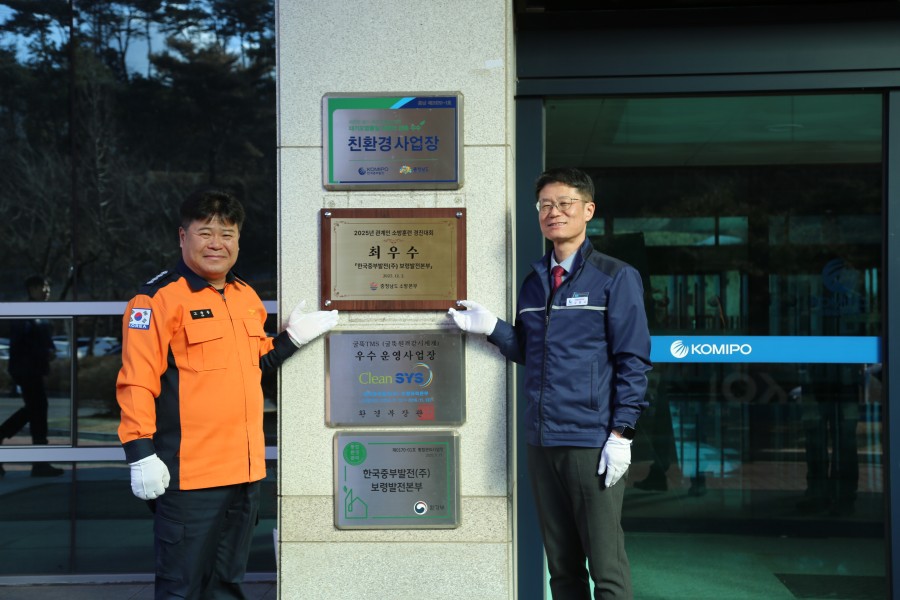 이번 현판 전달은 지난 12월 2일 충남도서관 대강당에서 열린 ‘2025년 관계인 소방훈련 경진대회’에서 한국중부발전 보령발전본부가 관계인 중심의 자율 소방훈련 운영 성과를 인정받아 최우수상을 수상한 것을 기념해 마련됐다.