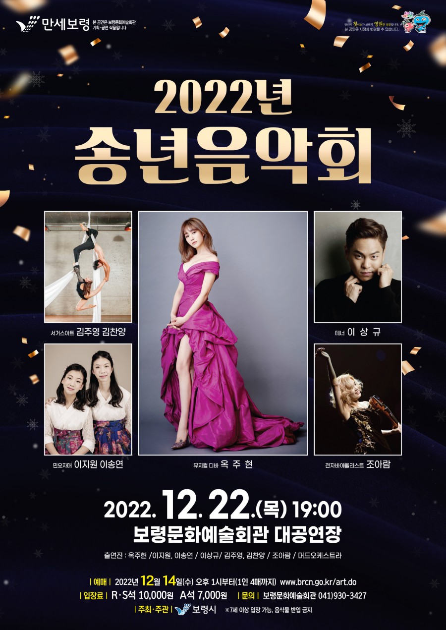보령시는 오는 22일 오후 7시 보령문화예술회관 대공연장에서 2022년 송년음악회를 개최한다.