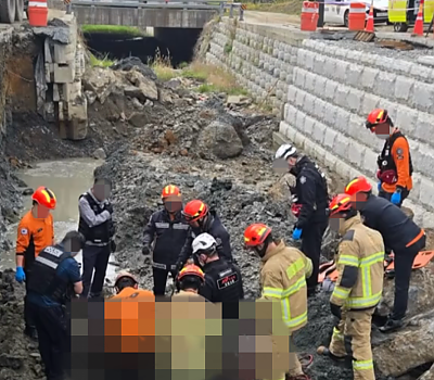 사고 직후 구조 작업이 진행됐으나 피해자는 끝내 숨졌다. 해당 사업은 집중호우 피해 이후 진행된 소하천 정비 사업으로, 제방(뚝) 보강, 보강토 구조물(옹벽) 시공, 하천 단면 정비 등이 포함된 것으로 알려졌다.