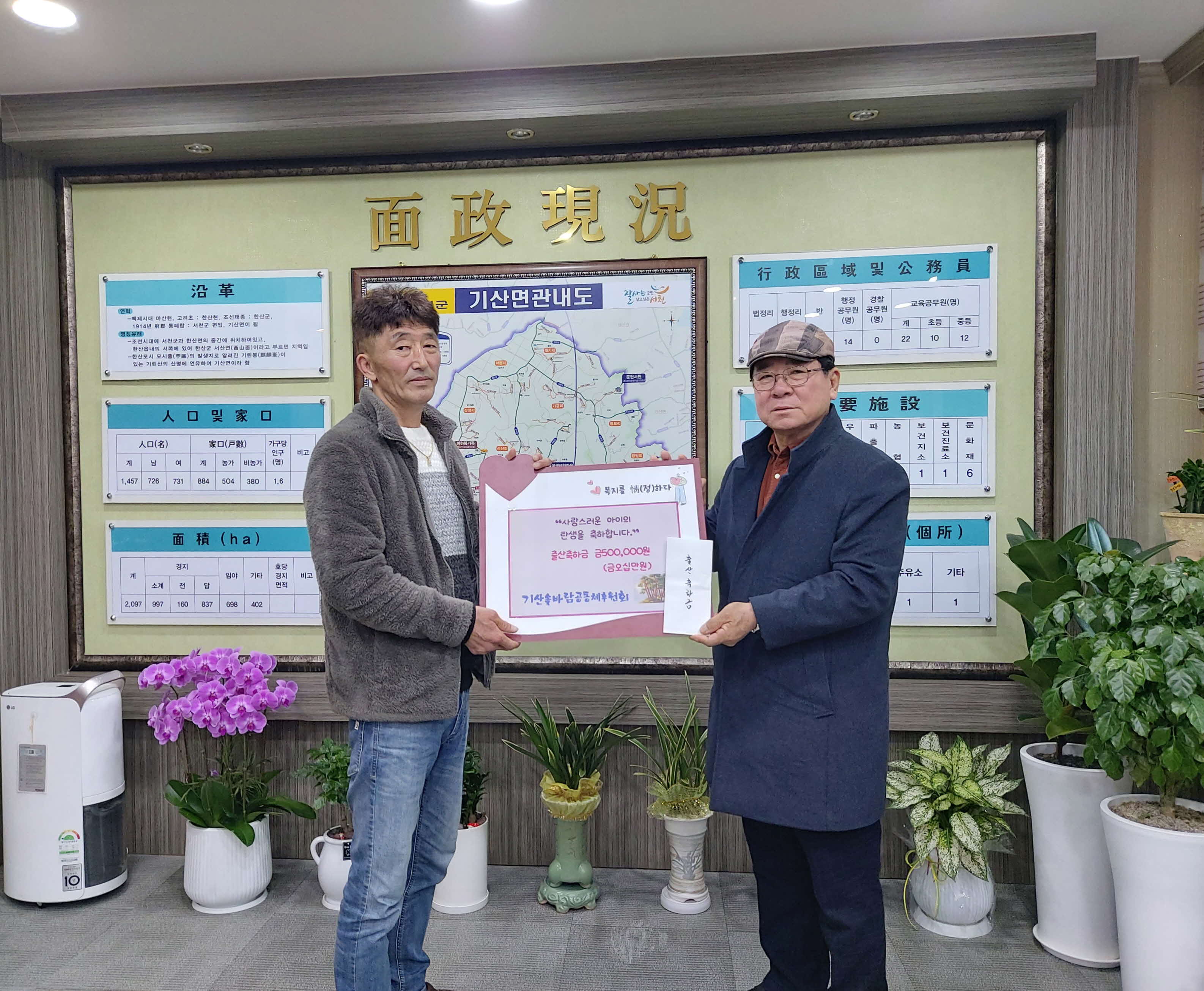 이번 출산축하금 지원은 저출산·고령화 사회 속에서 기산면에 태어난 아이들이 건강하게 성장하고 꿈을 키워갈 수 있도록 돕기 위한 후원회의 따뜻한 뜻을 담아 마련됐다.