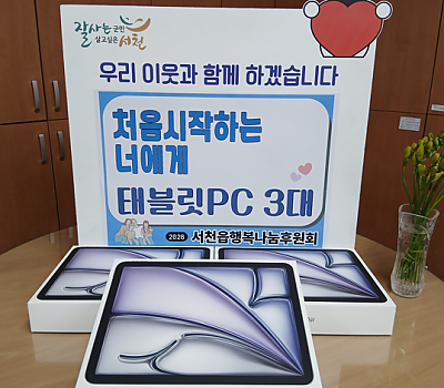 서천읍행복나눔후원회는 지난 11일 신입 대학생 3명에게 태블릿PC를 전달 하는‘처음 시작하는 너에게’ 사업을 추진했다. 이번 사업은 지난해에 이어 추진되는 사업으로, 태블릿PC가 …