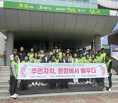 서면주민자치회는 지난 19일 전북특별자치도 완주군 고산면에서 현장에서 배우는 선진지 견학을 실시했다. 서면주민자치회는 고산면 주민자치회를 만나 1시간가량 선진사례를 경청하고 지역을…