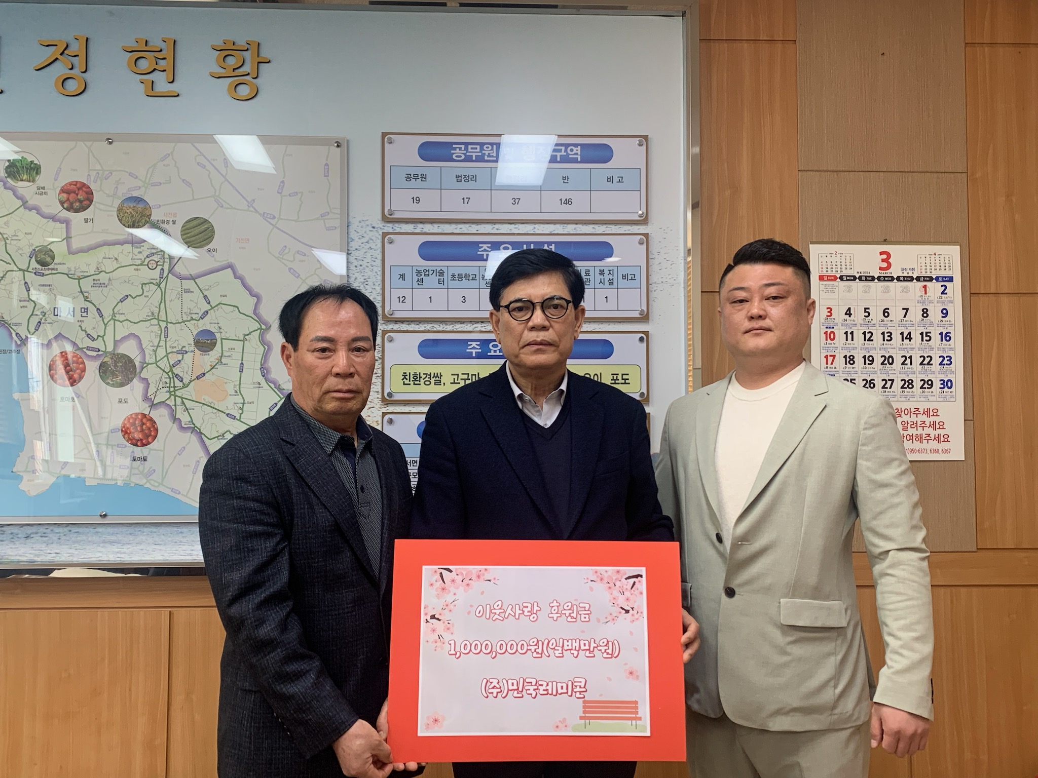- ㈜민국레미콘, 마서면 이웃돕기 성금 100만원 기탁