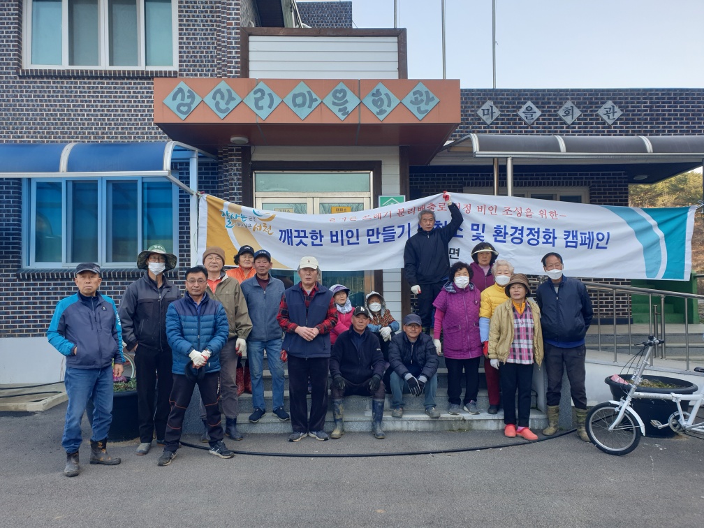 서천군 비인면이 지난 18일 성산리(이장 홍기광) 주민 등 20여 명이 참여한 가운데 성산리 일원에서 새봄맞이 마을 대청소를 진행했다.