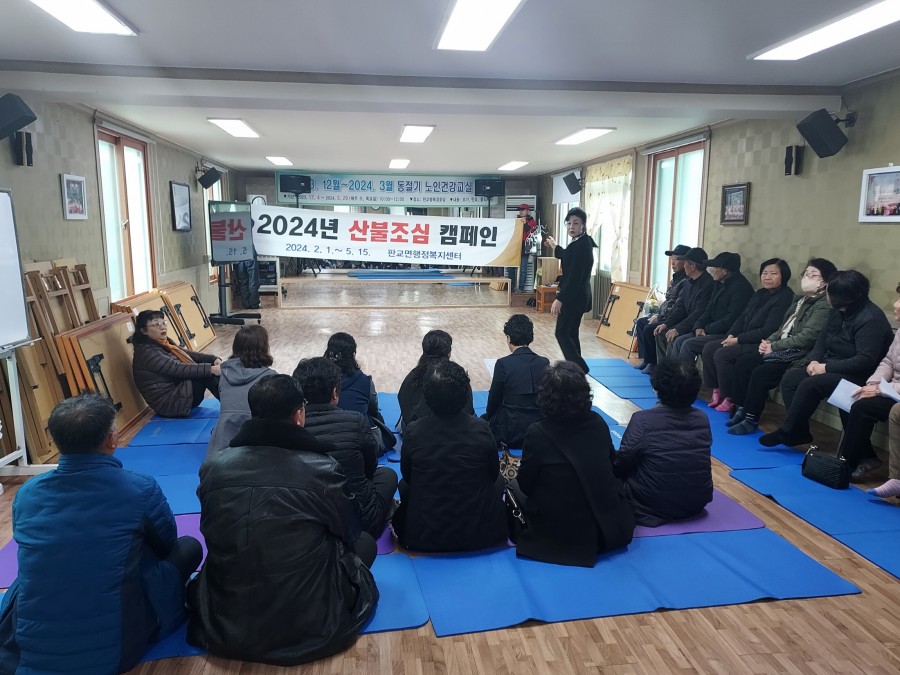 판교면은 농업부산물 소각 및 쓰레기 불법소각 금지 등 산불예방을 위한 주민 행동 요령과 산불 발생시 대피요령 등을 집중적으로 교육시켰다.