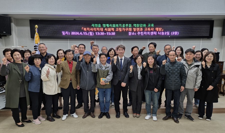 서천군 서천읍이 지난 15일 서천읍주민자치센터에서 서천읍 명예사회복지공무원을 대상으로 ‘복지사각지대 사회적 고립가구의 발견과 고독사 예방’에 대한 역량 교육을 진행했다.