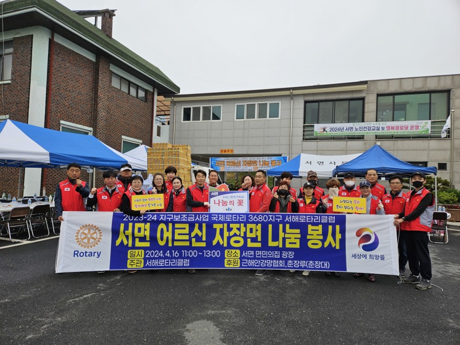국제로타리3680지구 서해로타리클럽이 지난 16일 서면주민자치센터 광장에서 서면 어르신을 대상으로 자장면 나눔 봉사를 실천하며 나눔의 꽃 제8호로 선정됐다.