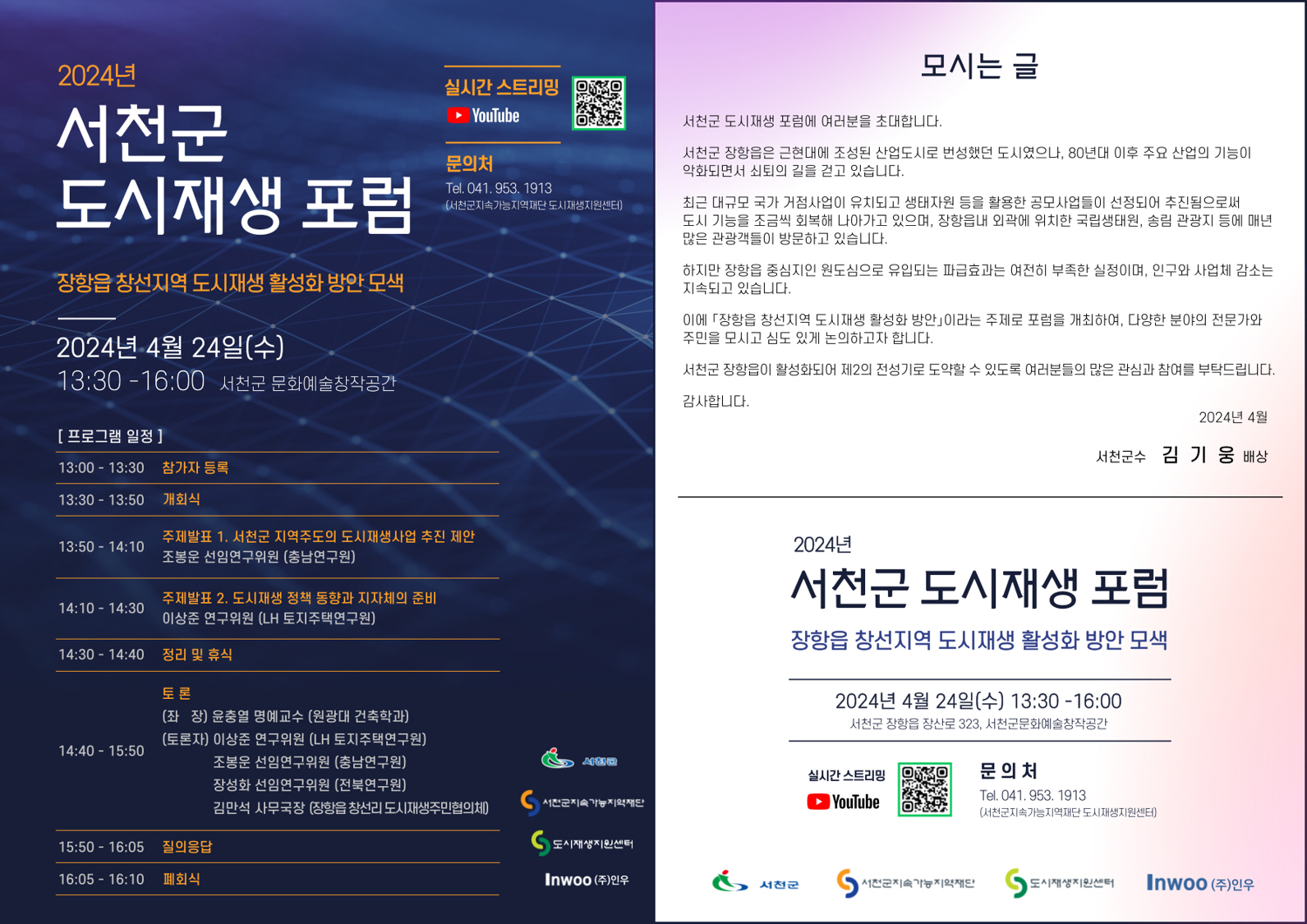 한편, 이번 포럼은 다양한 참여를 위해 서천군지속가능지역재단 유튜브 채널을 통해 생중계된다.