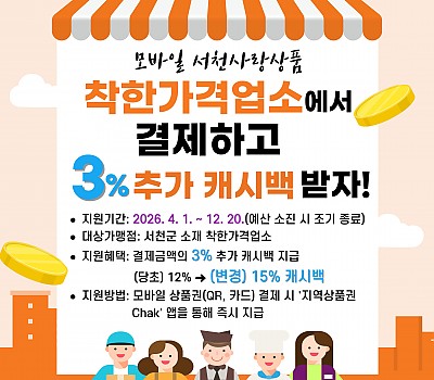 서천군, 착한가격업소 모바일 상품권 결제 시 최대 15% 혜택 제공