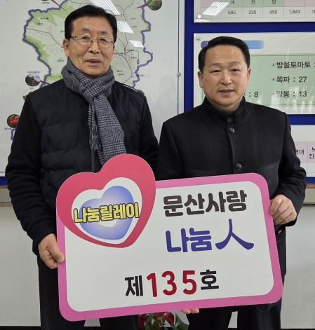 문산면 문산사랑후원회는 지난 5일 지역 내 어려운 이웃을 위해 성금 100만원을 기탁한 대한예수교장로회 문장교회 천대욱 담임목사를 문산 사랑 나눔135로 선정했다.