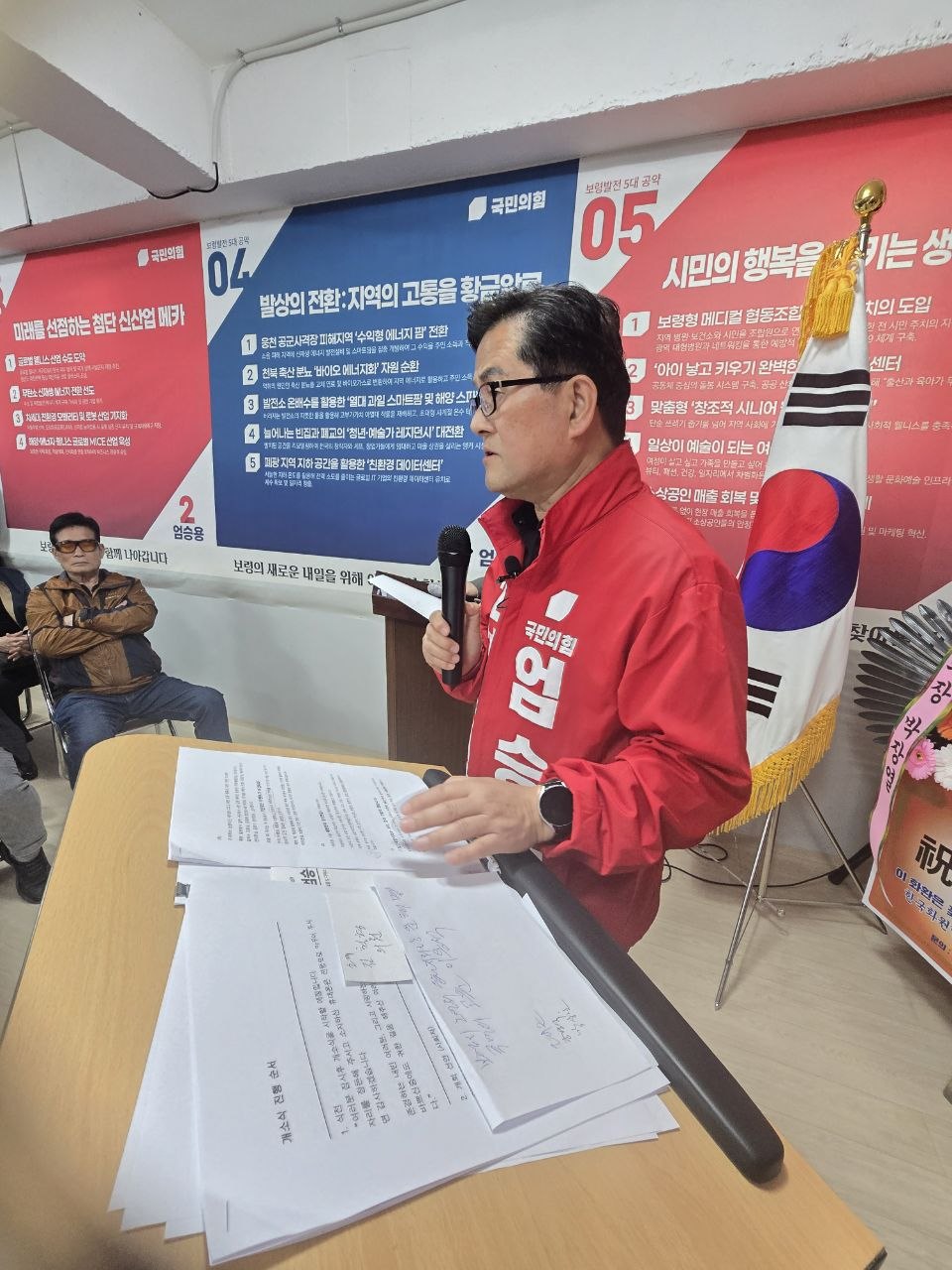 축사에 나선 한 지역 인사는 “엄 후보는 정책적 식견과 추진력을 두루 갖춘 인물”이라며 “보령이 직면한 인구 감소와 지역 경제 위기를 극복할 적임자”라고 치켜세웠다.